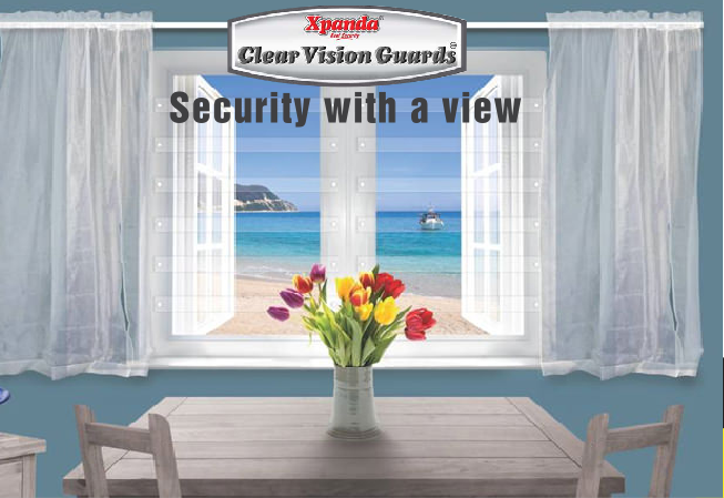 Clear Vision Guards are easy to install. They are strong, flexible and virtually unbreakable. They can be made to measure to fit any sized window, whether the window frame is made of wood or aluminium. They are also cheaper than metal burglar bars and not subject to rust.